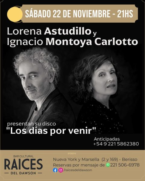 2025/11/22 Astudillo & Montoya Carlotto presentan “Los días por venir” en Berisso 2025/11/23 Cantamos a Mercedes Sosa en el Auditorio Nacional del Palacio Libertad 2025/11/24 Cantamos a Mercedes Sosa en el Auditorio Nacional del Palacio Libertad